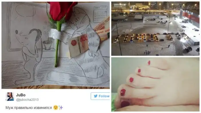 А в комментариях под фото выяснилось, что провинился муж много в чем, но, видимо, извинения супругу устроили. Молодец, мужик!