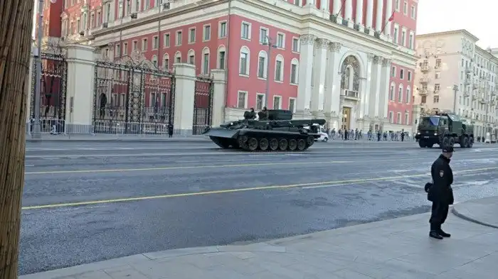 Поехали, белый микроавтобус видимо тоже в параде участвует )