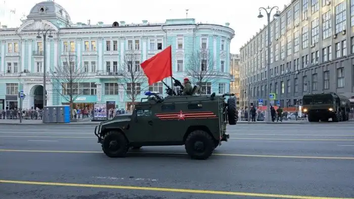 в этом году, стало очень модно на технику прикреплять красный флаг