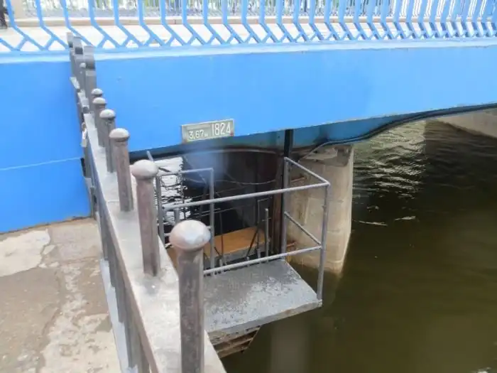 В Кронштадте на Синем мосту, проложенном через Обводной канал, можно увидеть футшток, измеритель высоты уровня моря, по которому измеряются все абсолютные высоты на территории бывшего СССР. Медная пластина, от которой ведутся все измерения, впервые была установлена в 1886 году, а в 1913 году ее заменили на новую, которая служит и по сей день. Рядом с мостом в колодце, связанным с каналом, который в свою очередь связан с Балтийским морем, находится мареограф - автоматический прибор, постоянно регистрирующий уровень воды относительно нуля футштока. Теперь, узнавая высоту какого-либо объекта над уровнем моря, вы будете вспоминать о кронштадтском футштоке, по которому она была измерена.