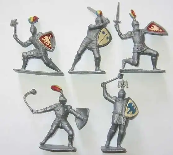 «Рыцари» (PO80-04): изначально 8 фигурок, затем 6, 60 мм. Выпускались только в СССР. Первые наборы поступили в продажу в декабре 1977. Фигурки немного крупнее остальных, на подставках 2 больших следа от толкателей. Вероятно, рыцари планировались к выпуску в поздней Тайваньской серии «WOW», но в известных перечнях наборов серии не значатся. Дата утверждения набора 1977 и через каждые 2 года перерегистрация до 1988. Их очень редко выпускали, 2 фигурки из-за износа пресс-формы в конце 80-х изъяли из производства: лучник и рыцарь с небольшим щитом и лентами на шлеме. Рука у фигурки рыцаря согнута так, будто он должен держать стяг или копье (в руке аналогичной гонконгской фигурки 30 мм – стяг). Возможно, пресс-форма изначально была бракованной и деталь стяга плохо проливалась. После распада СССР, на Украине продолжили выпуск набора из 6 фигурок. Различие между выпусками в подставке, у поздних следы от толкателей маленькие. Цвета: темно-зеленый; коричневый; серый; черный.