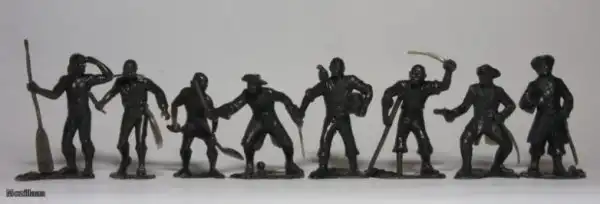 «Пираты» (PO80-07): 8 фигур, 60 мм. На подставке большой и маленький следы от толкателей. Цвета: зеленый; коричневый; кофейно-молочный; красный (вишневый); оранжевый; голубой; сине-зеленый; черный. На самых первых фигурках стояло клеймо «Hong Kong». Первые фигурки появились в продаже во второй половине 1976. Ограниченная партия фигурок выпущена из ПВХ (оранжевые, зеленые, бирюзовые, голубые, красные) и полистирола(темно-зеленые, голубые).