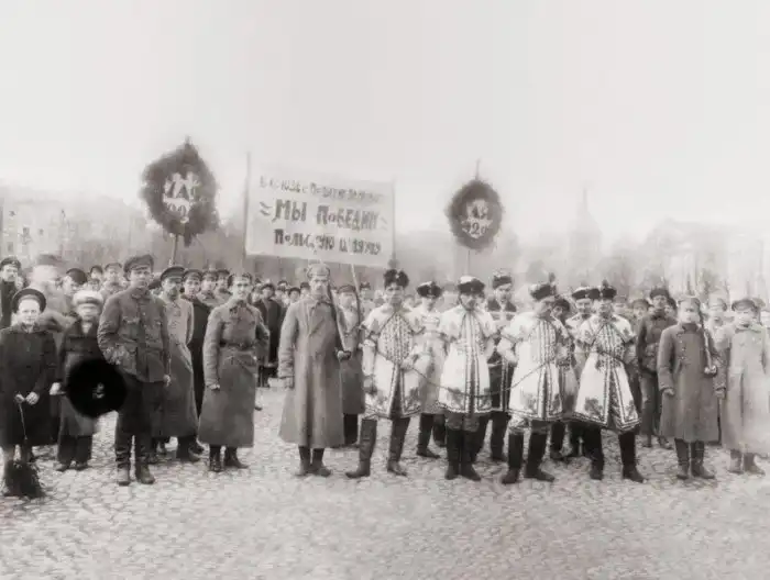 Дело было на фоне польско–советской войны. На плакате написано: "В союзе с польским пролетарием мы победим польскую шляхту". "Шляхта" справа.