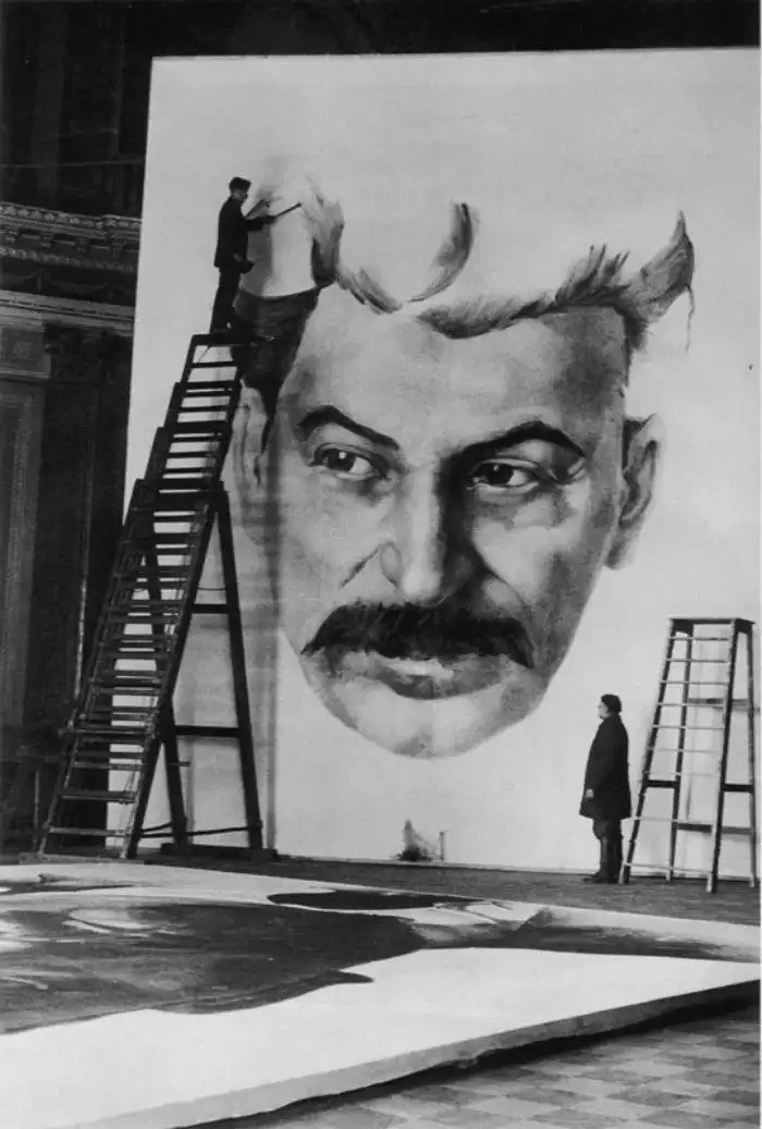 Студенты Академии художеств работают над портретом Сталина для украшения Ленинграда к празднованию 1 мая. 1934 год.