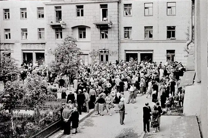 Фото 1959-1961 гг. из архива McSeam. Очередь за коврами на 5-й Парковой улице.