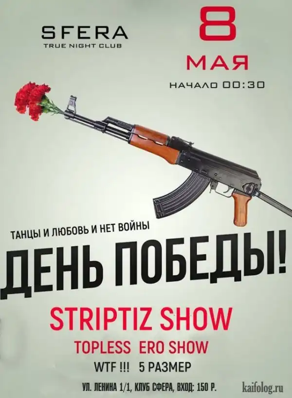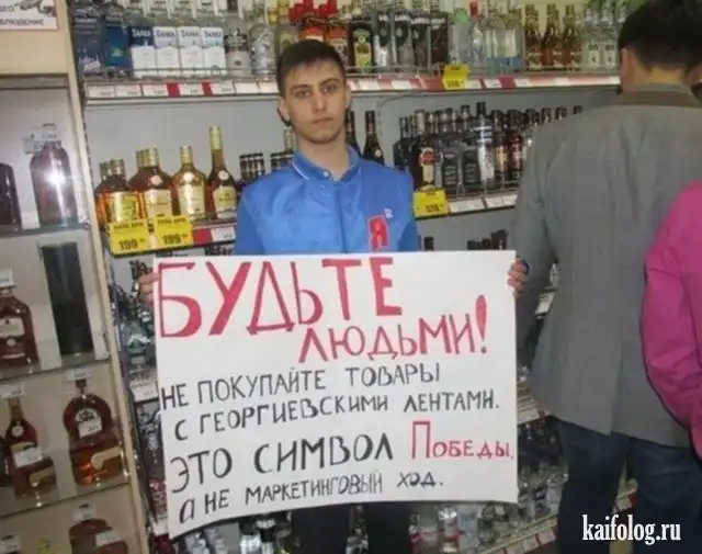 Жаль, что у меня нет категории "уроды дня", иначе ужасы 9-го мая я бы положила именно туда. Уже как-то писала, что в нашей стране любой хороший праздник превращают в цирк и распродажу, но это уже перебор. Это великий день, великая победа, которая досталась нам ценой более 20 млн. жизней. Как можно спекулировать на самом главном празднике страны? И ведь никто ничего с этим не делает. Мы защищаем чувства верующих, а вот на чувства ветеранов и просто людей, которые помнят, всем насрать. Практически во всех магазинах торгуют главными символами победы: горе-маркетологи совсем уже е$анулись, а люди... Короче, мне больно на это смотреть, но показать это вам я была обязана. Завтра великий праздник победы, поэтому приведите себя в порядок, чтобы ветераны смотрели на вас и понимали, что они не зря воевали. Кстати, если завтра на параде увидите идиота, которые использует георгиевскую ленточку вместо шнурков (или другим позорным способом), дайте ему пендюля, и можете даже передать, что это от меня. :) С наступающим Днём Победы! Фото разных лет, но они актуальны.