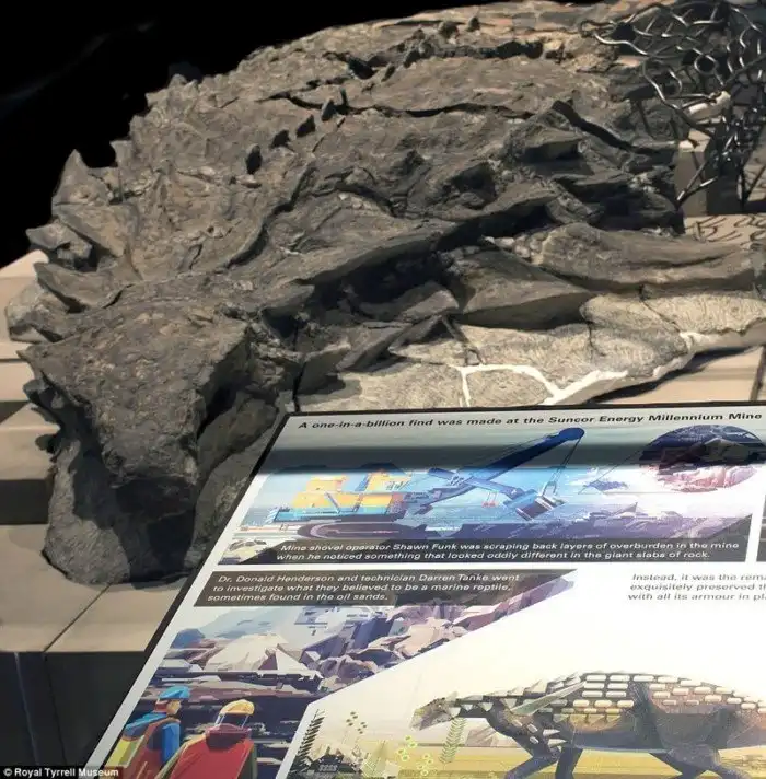 Согласно музею, это лучший сохранившийся бронированный динозавр в мире, включая кожу и панцирь из костяных пластин. Он жил в середине мелового периода, между 110 и 112 миллионами лет назад. Такие существа были в среднем около 5 метров в длину, весили до 1300 кг и у них из плеч торчали два 50-сантиметровых шипа.