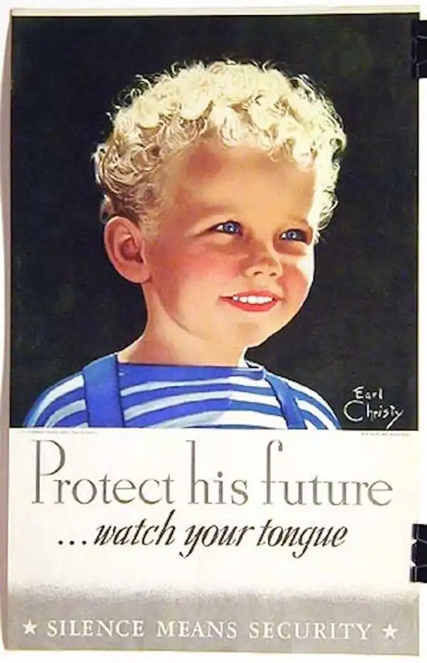 Очень много плакатов посвящено экономии, производительности труда, помощи союзникам и пресечению безответственной болтовни, которую могут подслушать шпионы и т.д.