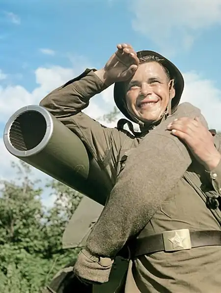 Гвардии младший сержант В. Агапов — командир одного из лучших расчетов Н-ской гвардейской части. Фотографы Г. Макаров, А. Становов, 1952 год.