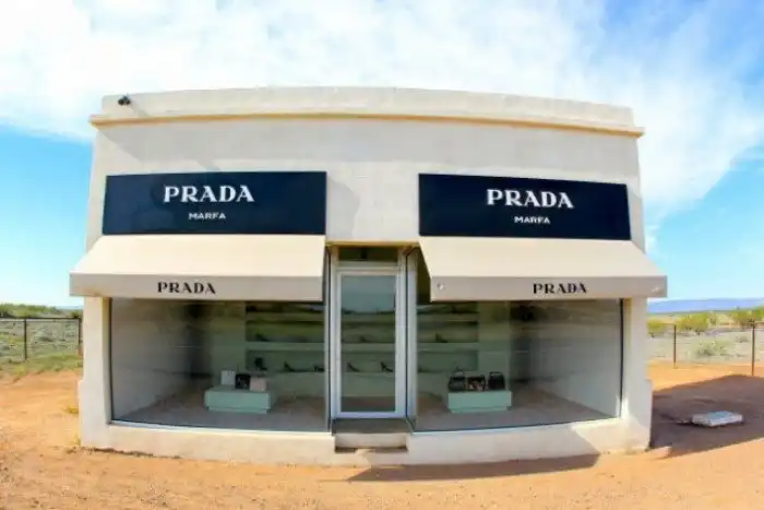 Посреди пустыни в Техасе стоит магазин Prada. Его полки заполнены дорогими сумками, украшениями и дизайнерской обувью. Однако приобрести их не удастся. Дело в том, что это инсталляция, цель которой — посмотреть, как будет выглядеть магазин вдали от цивилизации.