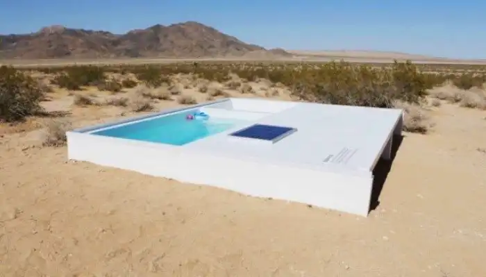 Один находчивый австрийский художник построил самый настоящий элитный бассейн в пустыне Мохаве. Искупаться в холодной воде посреди жаркой пустыни может любой желающий. Вот только найти этот бассейн нелегко: рядом нет никаких ориентиров, а карты Google не определяют его местоположение.