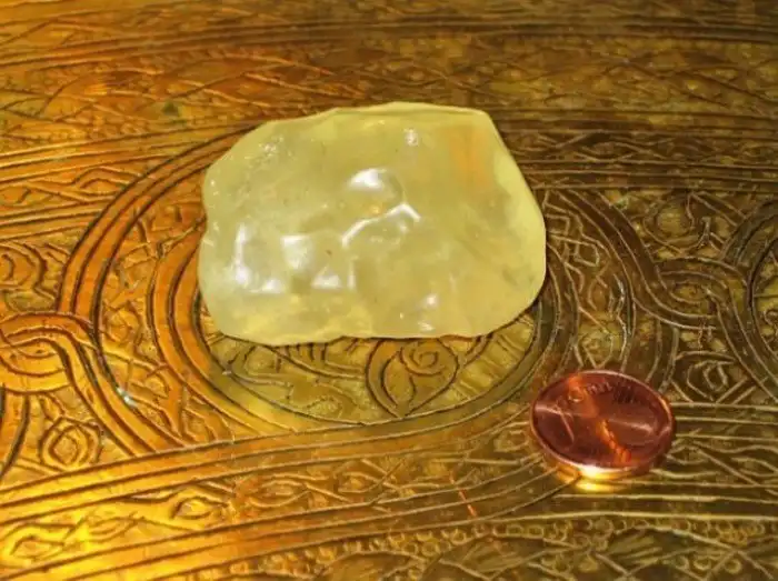 Ливийское стекло — это самый редкий минерал на планете, найти который можно только в песках Египта. Именно из него был сделан кулон, найденный в гробнице того самого Тутанхамона. Ученые до сих пор не выяснили историю его образования. Но одна из версий гласит, что 28 млн лет назад в пустыню упал огромный метеорит. Его температура расплавила песок, а ветер раскидал жидкую смесь по пустыне.