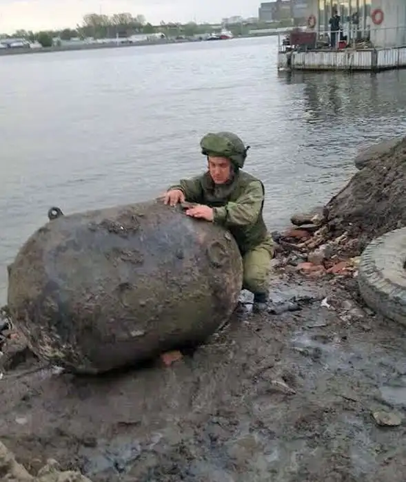 В Санкт-Петербурге на Васильевском острове у Западного скоростного диаметра обнаружили гигантскую мину, которую могло прибить течением. Мину нашли 24 мая во время строительных работ у дома 39 по Морской набережной. Это оказалась гальваноударная корабельная мина – «Краб» или «КБ, корабельная большая», образца 1931 года. Мина полной массой более тонны обладает 230 кг взрывчатого вещества, а уничтожать ее будут методом подрыва на полигоне. Мина, оставшаяся со времен Великой Отечественной войны, была признана самой большой находкой саперов за последнее время.