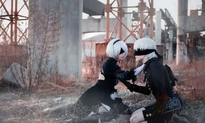 Далее вас ждет косплей на главную героиню новой компьютерной игры Nier: Automata - боевого андроида 2B. Этот робот обладает множеством похожих друг на друга тел, позволяющих ему успешно сражаться со своими врагами. Если девушки на этих снимках покажутся вам практически одинаковыми, то не стоит удивляться, ведь авторы этой фотосессии старались в точности следовать сюжету игры.