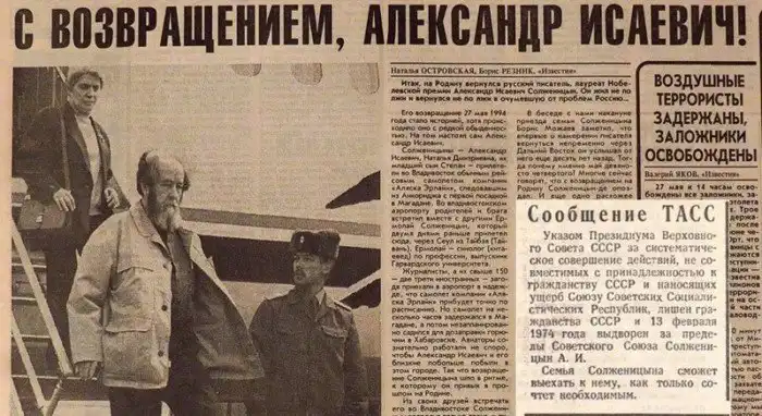 27 мая 1994 в Россию вернулся Александр Солженицын, выдворенный из страны в 1974 году.