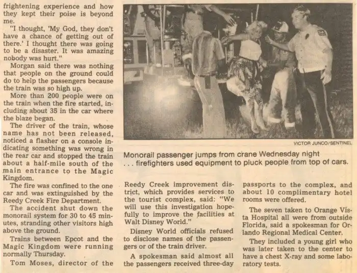 Ежегодно американский Диснейленд устраивает грандиозную вечеринку для выпускников школ после закрытия парка, на которой веселье продолжается до утра. Попасть туда - заветная мечта многих школьников. Томас Кливленд из Нортриджа, Калифорния, не достав билета, решил проникнуть в парк по-иному. Забравшись на семиметровый забор, он ждал подхода монорельсовой тележки, чтобы запрыгнуть на ее крышу. В этот момент его заметила охрана парка. Торопясь, 19-летний парень прыгнул прямо на пути - и тут же был сбит насмерть подошедшим вагончиком монорельса. Вагон смог остановиться лишь через 10 метров, протащив тело Томаса по путям, - у юноши не было ни единого шанса выжить.