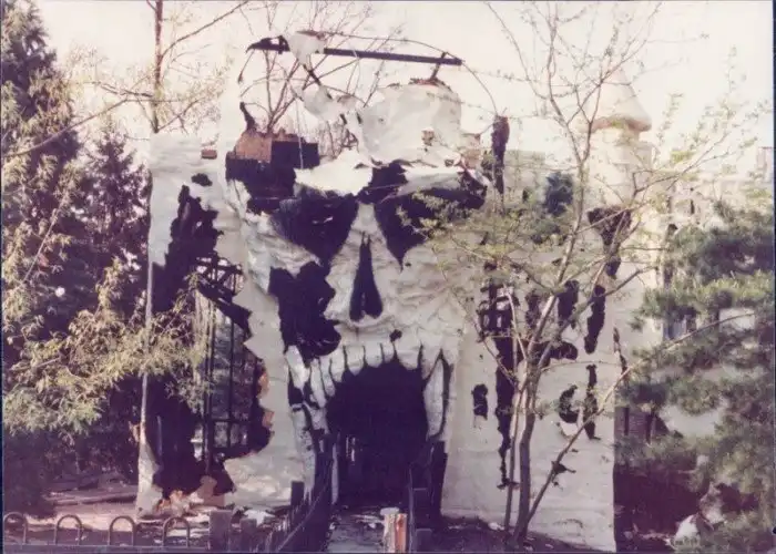 Это происшествие случилось в том же техасском парке "Шесть флагов" 11 мая 1984 года. "Замок привидений" был построен как комната страха с темными закутками и механическими призраками. В тот раз один мальчик в группе сильно испугался темноты, и его товарищ, чтобы помочь ему, решил подсветить им зажигалкой. От одного неловкого движения зажигалкой мгновенно загорелась пластиковая обшивка замка. К месту происшествия мгновенно подъехали пожарные. Они успели эвакуировать часть посетителей, однако восемь подростков от 15 до 18 лет погибли, задохнувшись в дыму.