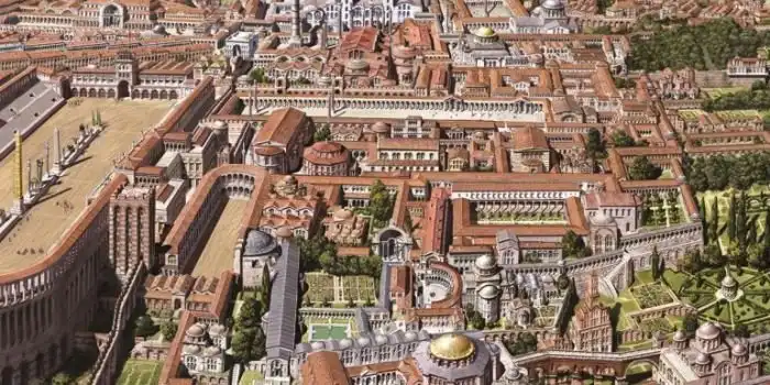 Вдохновленный древними изображениями Константинополя (нынешнего Стамбула), художник Антуан Хелберт (Antoine Helbert) проанализировал большинство из них и составил несколько подробных изображений города, каким он был в период с IV по XIII век нашей эры в момент своего расцвета и могущества. Чтобы мы лучше могли представить внешний вид и архитектуру самого богатого на тот момент города Европы, художник предлагает нам взглянуть на город с высоты птичьего полета.