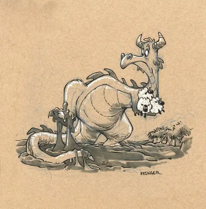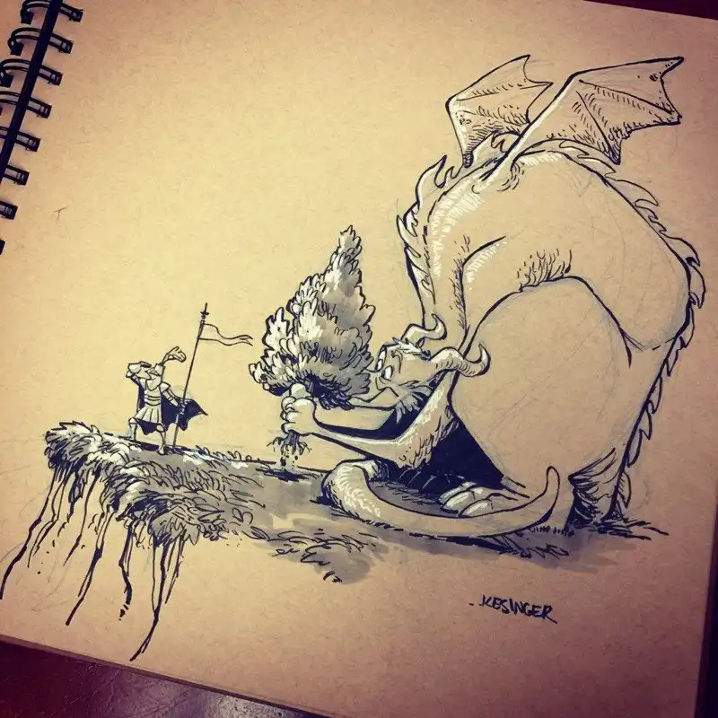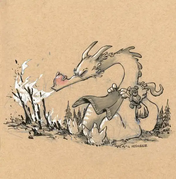 Брайана Кесингера с детсва вдохновляют драконы. Будь то фильмы или видео игры, эти мифические существа оказывают огромное влияние на его творчество. Поэтому Брайан решил нарисовать серию работ, отражающих противоположную сторону этих сказочных персонажей.