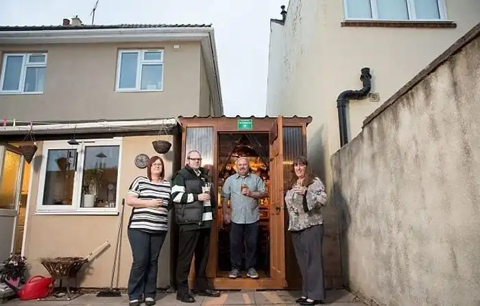 Две живущие по соседству семьи из британского города Уилленхолл в графстве Стаффордшир решили построить частный паб и выбрали для этого место вежду своими домами. Семьи Майерс и Шелдон работали над созданием паба в течение трех месяцев и теперь проводят в нем совместные вечера. Использовав простые стройматериалы, соседи построили небольшое помещение длиной 4,5 метра и шириной 1,8 метра. Поработав над интерьером помещения, они получили уютное местечко, в котором можно в любое время насладиться бутылкой пива.