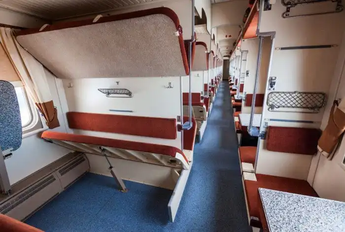 Вахтовый поезд — обычные плацкартные вагоны. Но все чисто и аккуратно. В силу строжайшего сухого закона на месторождении все вахтовики при посадке в поезд проходят контроль, как в аэропорту — рентген и досмотр.