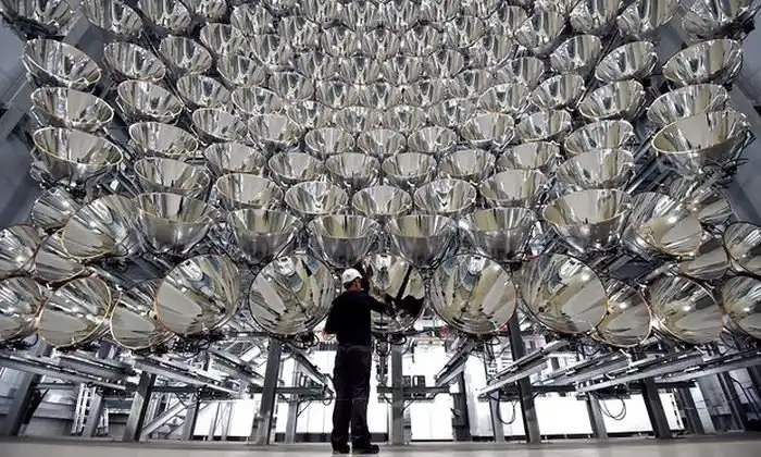 В немецком городе Юлих в Аэрокосмическом центре Германии (DLR) находится крупнейшее в мире искусственное солнце. Конструкция размером с трехэтажный дом носит название Synlight и помогает проводить различные исследования, а также позволяет вырабатывать водородное топливо с помощью света. Установка стоимостью в 3,5 миллиона евро состоит из 150 7-киловаттных ламп, установленных в отражателях и направленных на точку площадью 20х20 см, где достигается температура в 3 500 градусов Цельсия. Благодаря интенсивности освещения в 10 000 раз выше обычной, удается работать над технологией выделения водорода из водяного пара, который планируют использовать в качестве экологически чистого топлива.