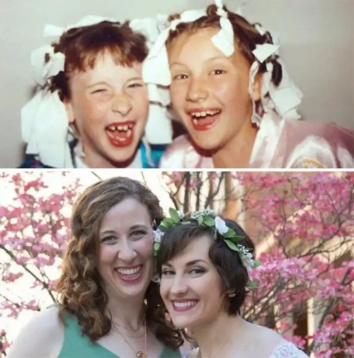 «Мы с моей лучшей подругой перед костюмированной вечеринкой в 1998 году и на моей свадьбе в 2016 году».