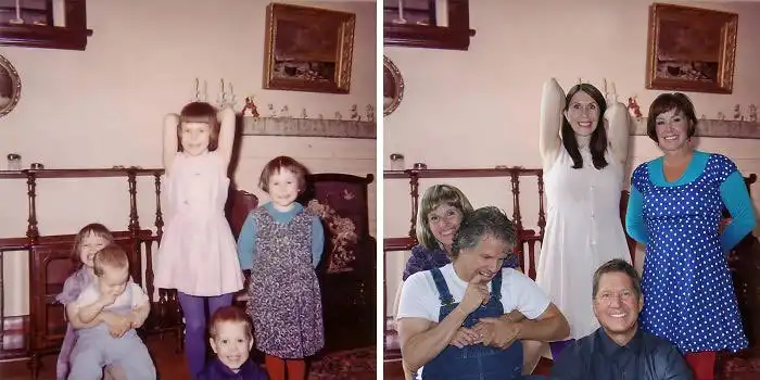 Братья и сёстры (и одновременно лучшие друзья) в 1966 и 2014 году.