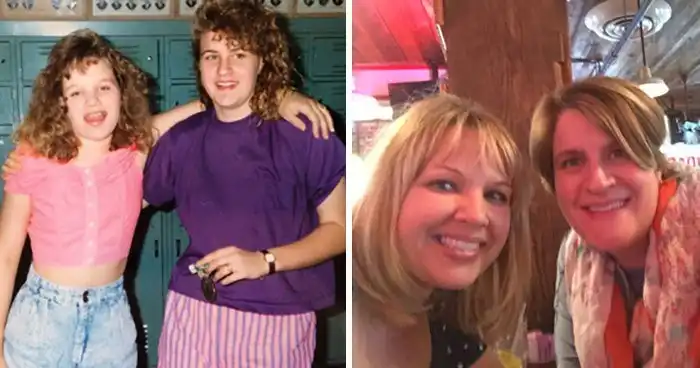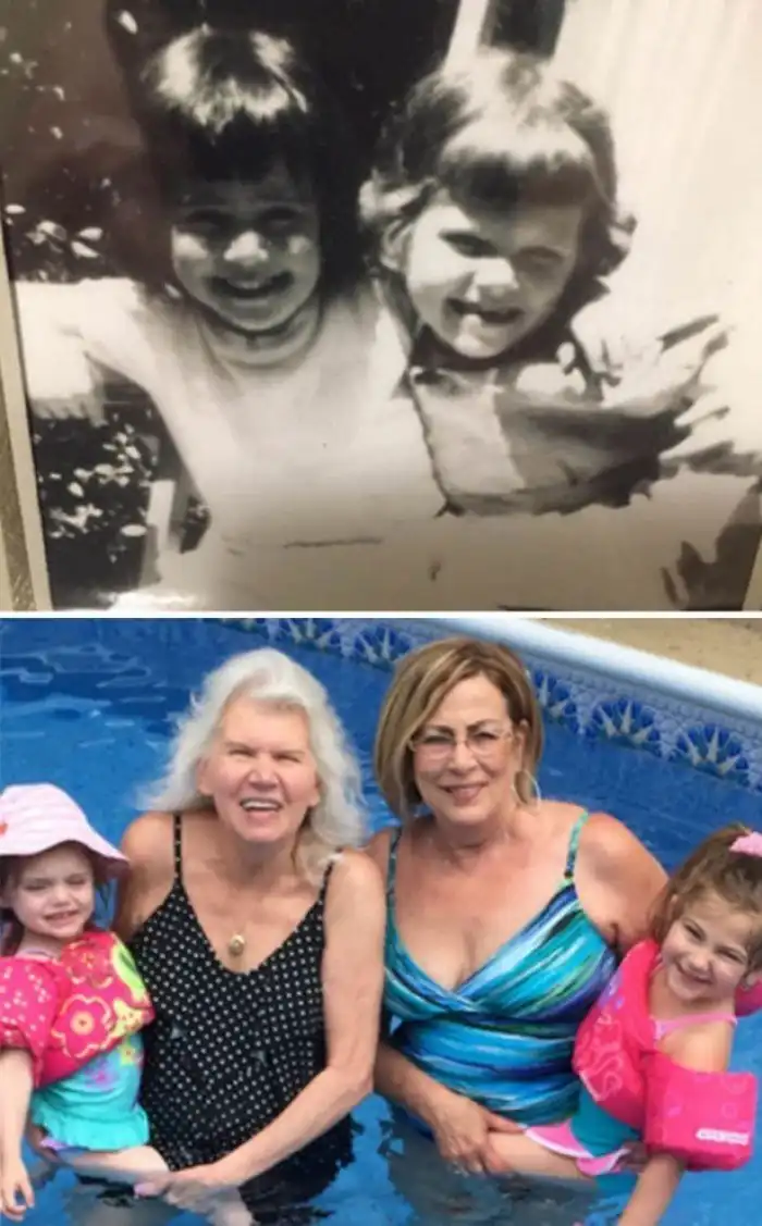 Две фотографии лучших подруг, сделанные с разницей в 38 лет (1978 – 2016).