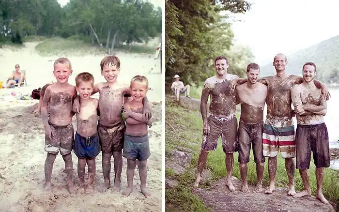 «Мой маленький брат со своим лучшим другом в ванне. Тогда и сейчас».