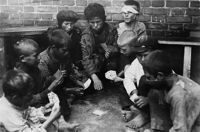 Беспризорники на Николаевском вокзале в Москве, 1920 год