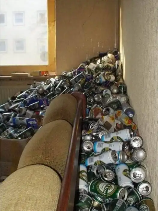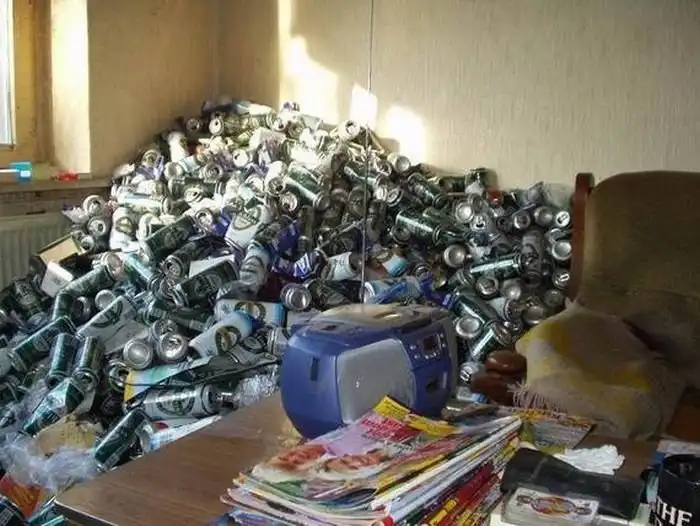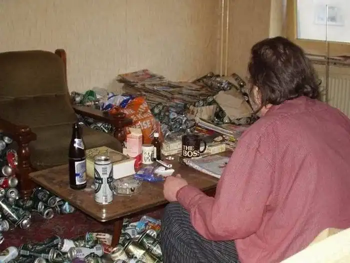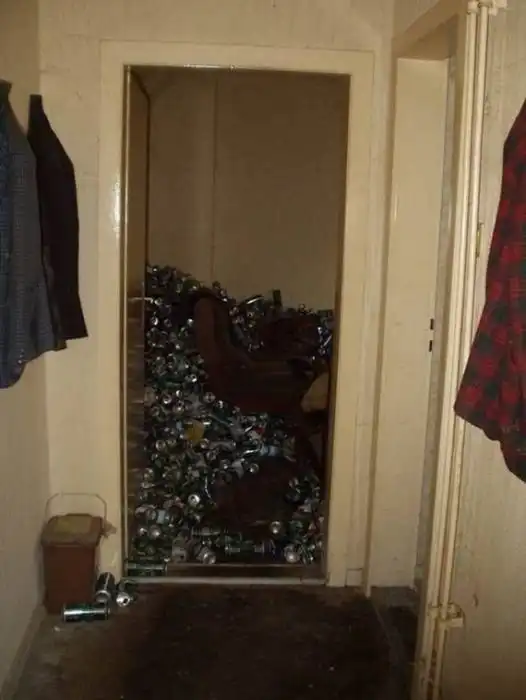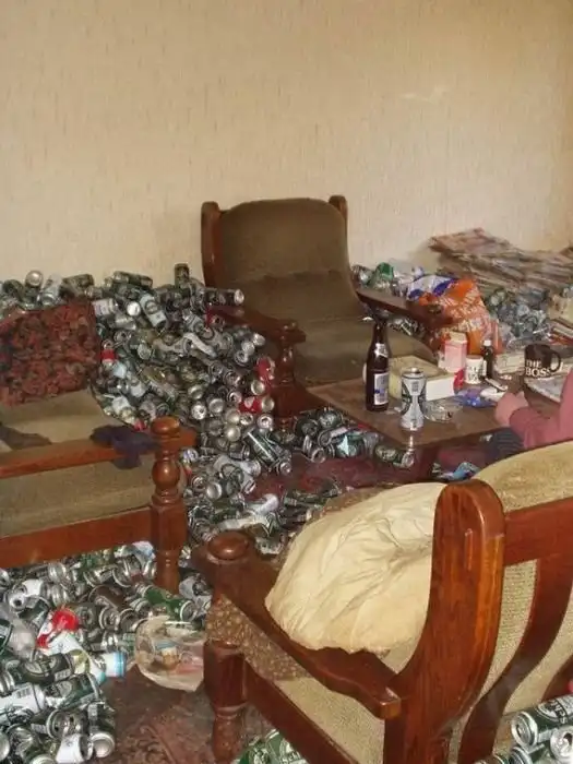 Взглянув на эти фото, вы можете подумать, что перед вами какая-то свалка или пункт сбора пивных банок, но, на самом деле, это обычная квартира. А проживает в ней мужчина, который очень любит пиво и уже превратился в настоящего алкоголика. Все его мысли, судя по всему, заняты лишь тем, где достать еще пива, поэтому ему совершенно нет дела до того, как выглядит его жилье.