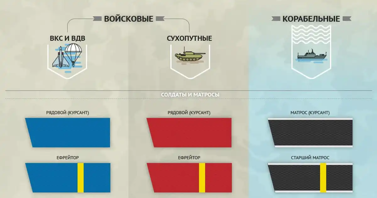 Наглядно о воинских званиях военнослужащих — войсковых и корабельных.