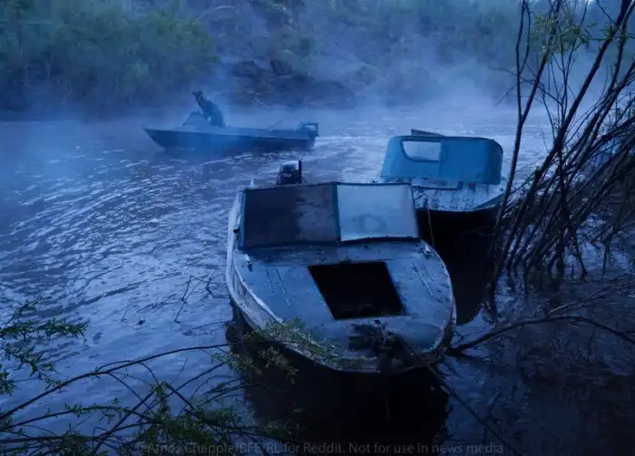 Чеппл присоединился к черным копателям в одной из сибирских деревень, от которой им предстоит четыре часа пути на моторной лодке до места работ.