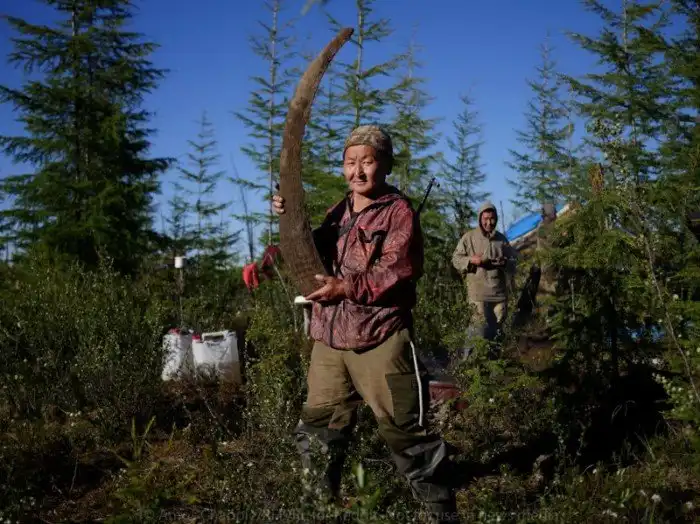 Этим копателям повезло: им удалось извлечь из вечной мерзлоты 65-килограммовый бивень. Впоследствии он был продан за $34 000.
