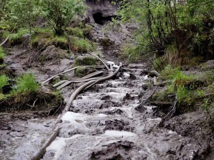 Действия копателей наносят серьезный вред природе Якутии. И безнадежно испорченный пейзаж - это еще полбеды. Вода, которую копатели используют для пробивания туннеля, вновь стекает в реки, неся с собой иловые наносы. В результате из рек уходит рыба. "Из реки, на которой мы работали, рыба ушла давно, - рассказывает Чеппл. - Копатели уже даже не берут с собой удочки".