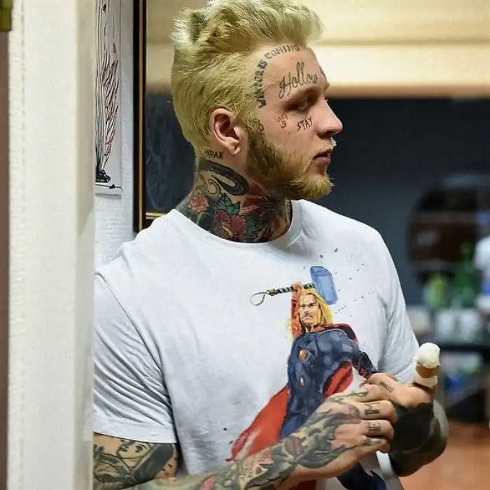 А так же не на шутку увлекается татуировками — и большая часть его тела (в том числе и лицо) покрыта ими.