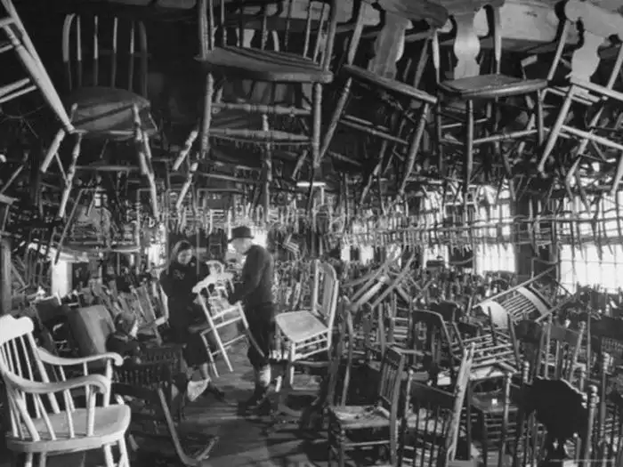 Ассортимент старинных стульев в антикварном магазине