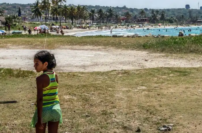 Дети смотрят на Мексиканский залив с территории Малекона — прогулочной зоны вдоль океана