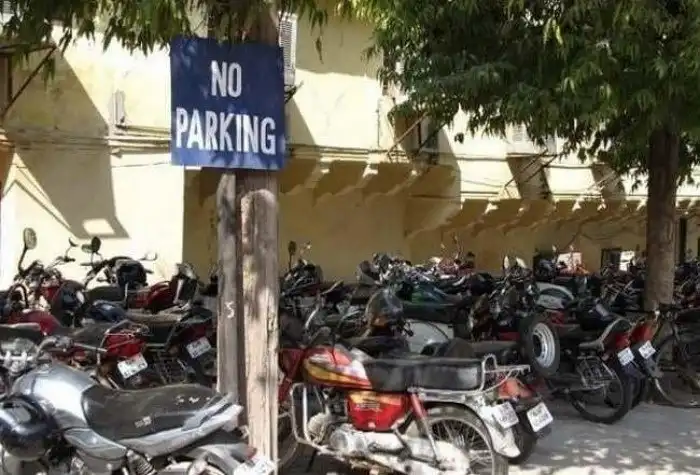 Табличка предупреждает, что парковка разрешена только для автомобилей. Индийские байкерыв в шоке: уж не пахнет ли здесь дискриминацией?