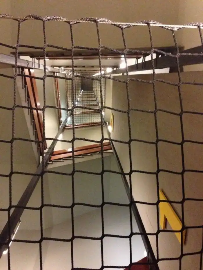 Такие сетки натянуты во всех лестничных проемах на фабриках, производящих технику Apple. При этом оконные проемы забраны решетками. Руководство компании вынуждено было принять эти меры, когда выяснилось, что на производственных предприятиях, производящих технику Apple, - один из самых высоких в мире уровней самоубийств. Потогонная система и тяжелые условия труда приводят слишком многих работников к выводу о том, что лучше смерть, чем такая жизнь.