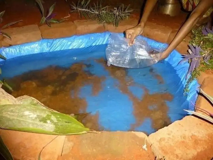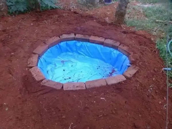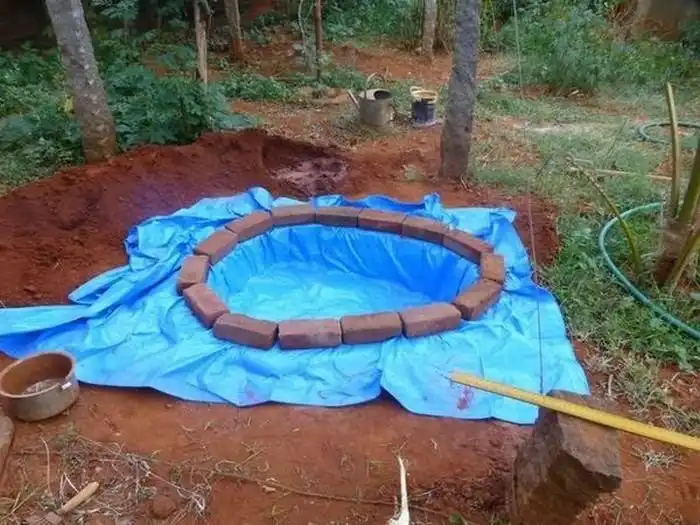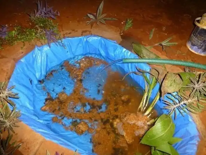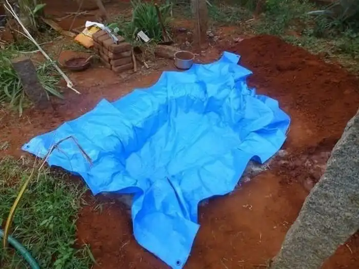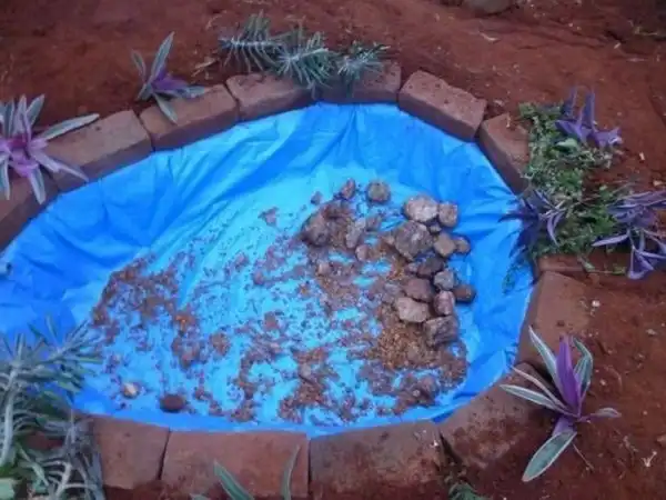 Фотоотчет о том, как сделать небольшой пруд на своем участке. Для этого нам понадобится время, лопата, пленка и немного камней. Довольно подробный отчет смотрим чуть ниже. Вот только пленку такого цвета я бы не стал использовать, уж очень странно она смотрится на дне.