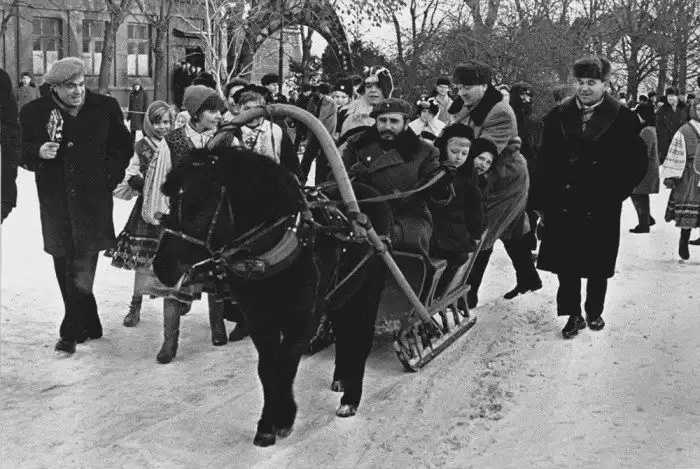 21. Фидель Кастро катает советских детей по улицам Москвы, 14 января 1964 года, СССР