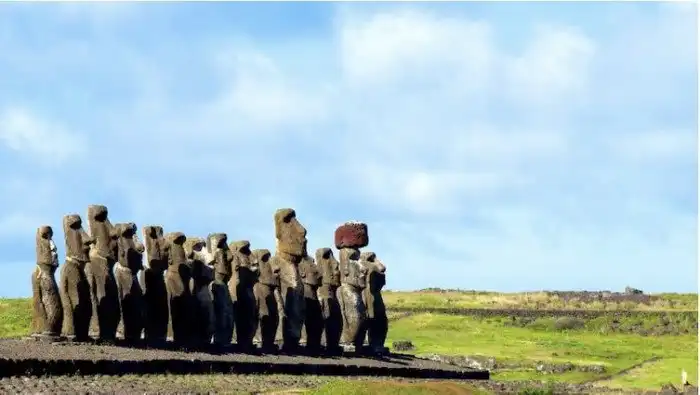Мы привыкли видеть их изображения по отдельности, но на острове Пасхи эти древние истуканы стоят в ряд