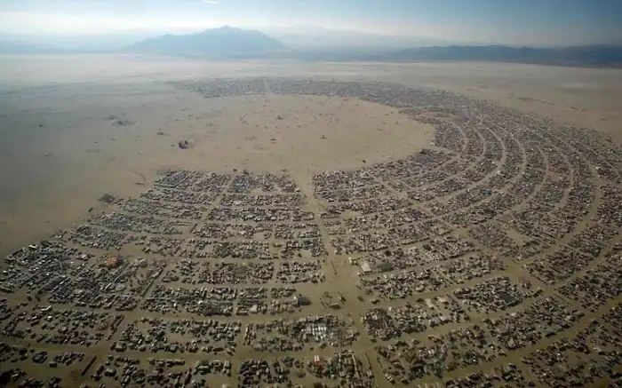 Так сверху выглядит фестиваль Burning Man, ежегодно устраиваемый в пустыне Блэк-Рок (Невада, США)