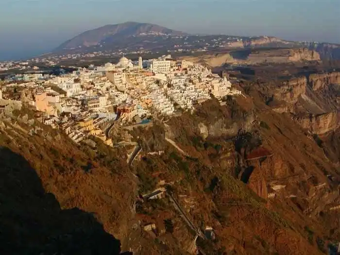 Греческий остров Санторини - здания будто вырастают из горы