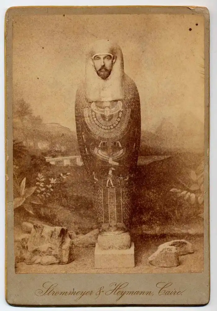 Сувенирная фотография европейского туриста из путешествия по Египту. Каир, 1885 г.