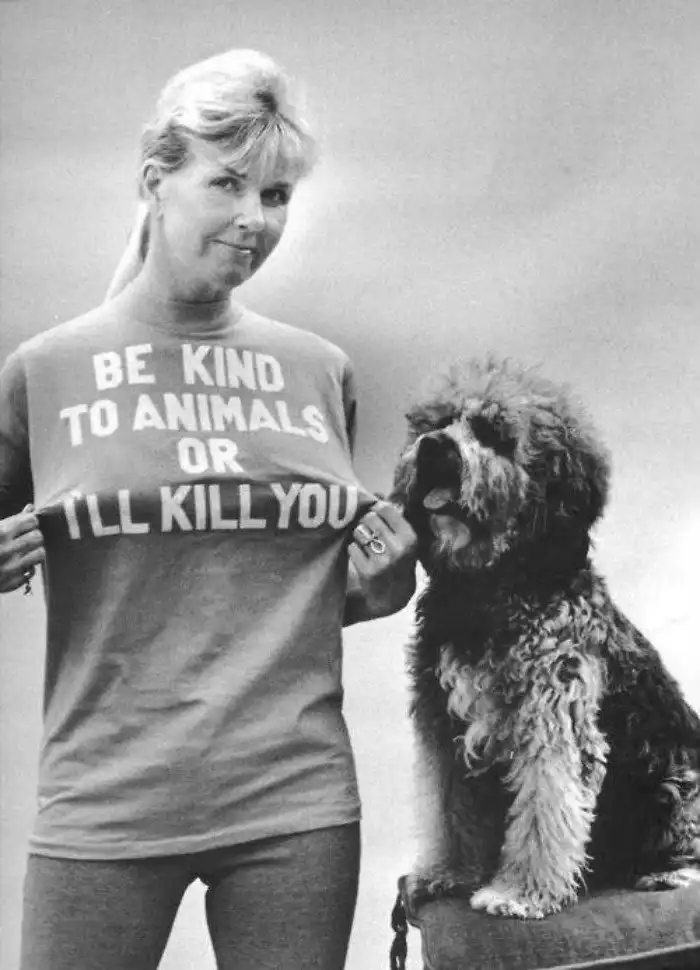 Актриса и активистка за права животных Дорис Дэй, которой принадлежит лозунг "Будь добр к животным, или я убью тебя"