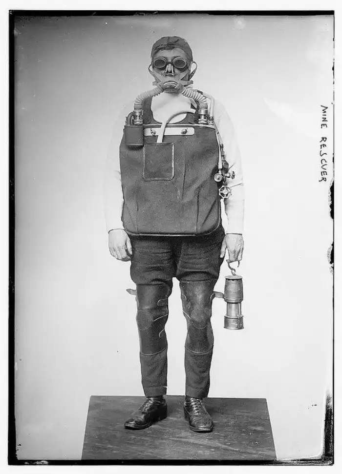 Спасатель на шахте в специальной экипировке. США. Прибл. 1910г.