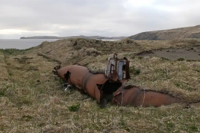 Алеутский архипелаг расположен к юго-западу от Аляски, после продажи этой территории Российской империей в 1867 году перешёл под юрисдикцию США. Во время Второй Мировой войны остров был захвачен японцами, которые оборудовали здесь базу подлодок. Перед отступлением в 1943 году японцы взорвали остававшиеся здесь суда, большинство из них до сих пор лежат здесь.